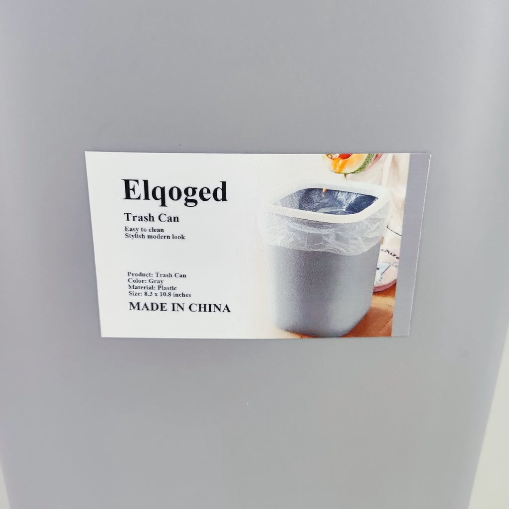 Elqoged Stylish Square Trash Can Gray Durable Plastic Design, Compact Size for Home and Office Use