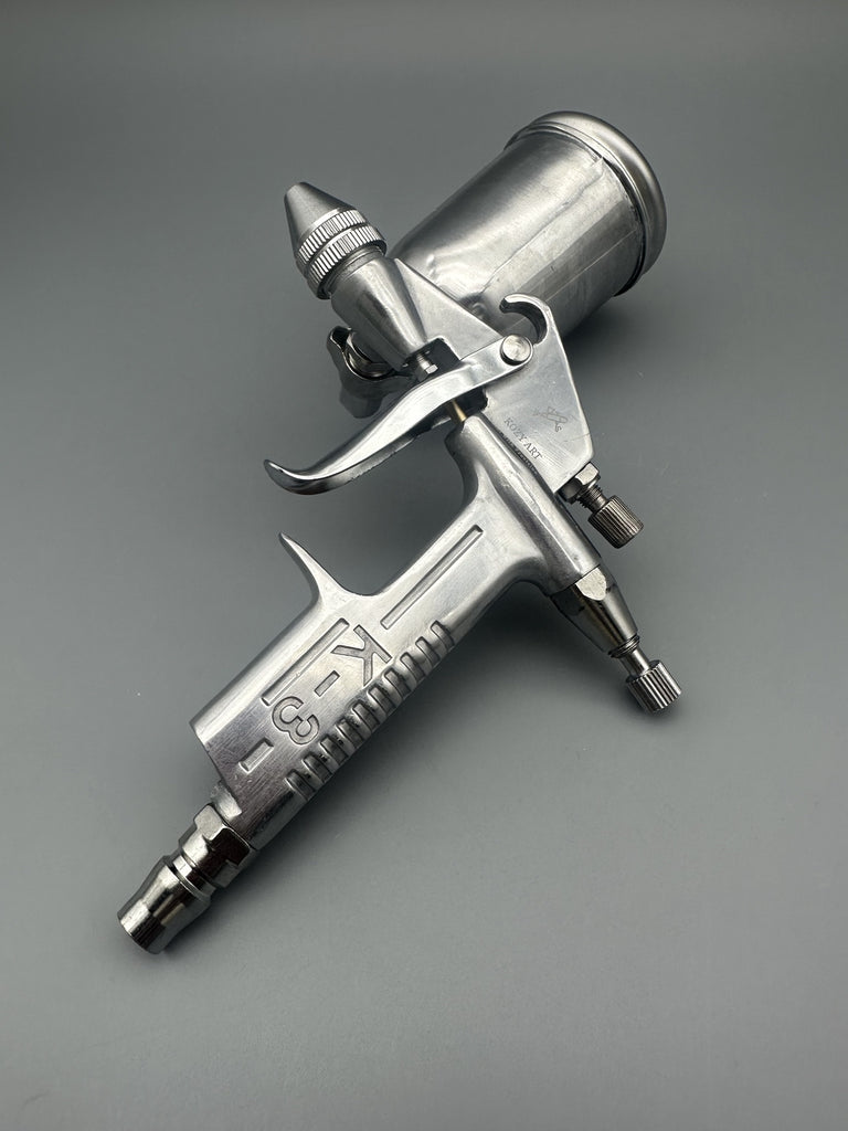 High-performance spray gun designed for precision painting jobs, delivering smooth and even coverage on various surfaces. Ideal for DIY enthusiasts and professional painters seeking efficient and consistent paint application.