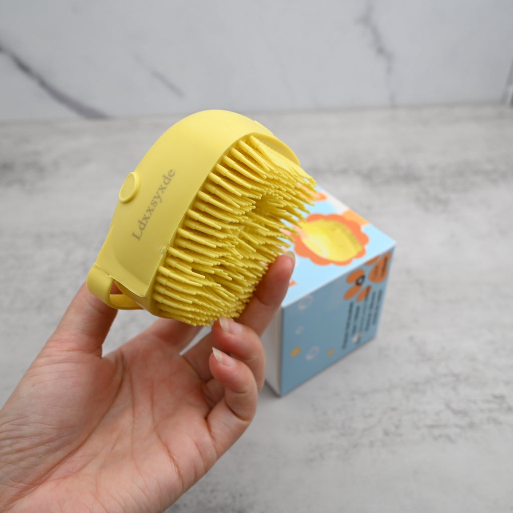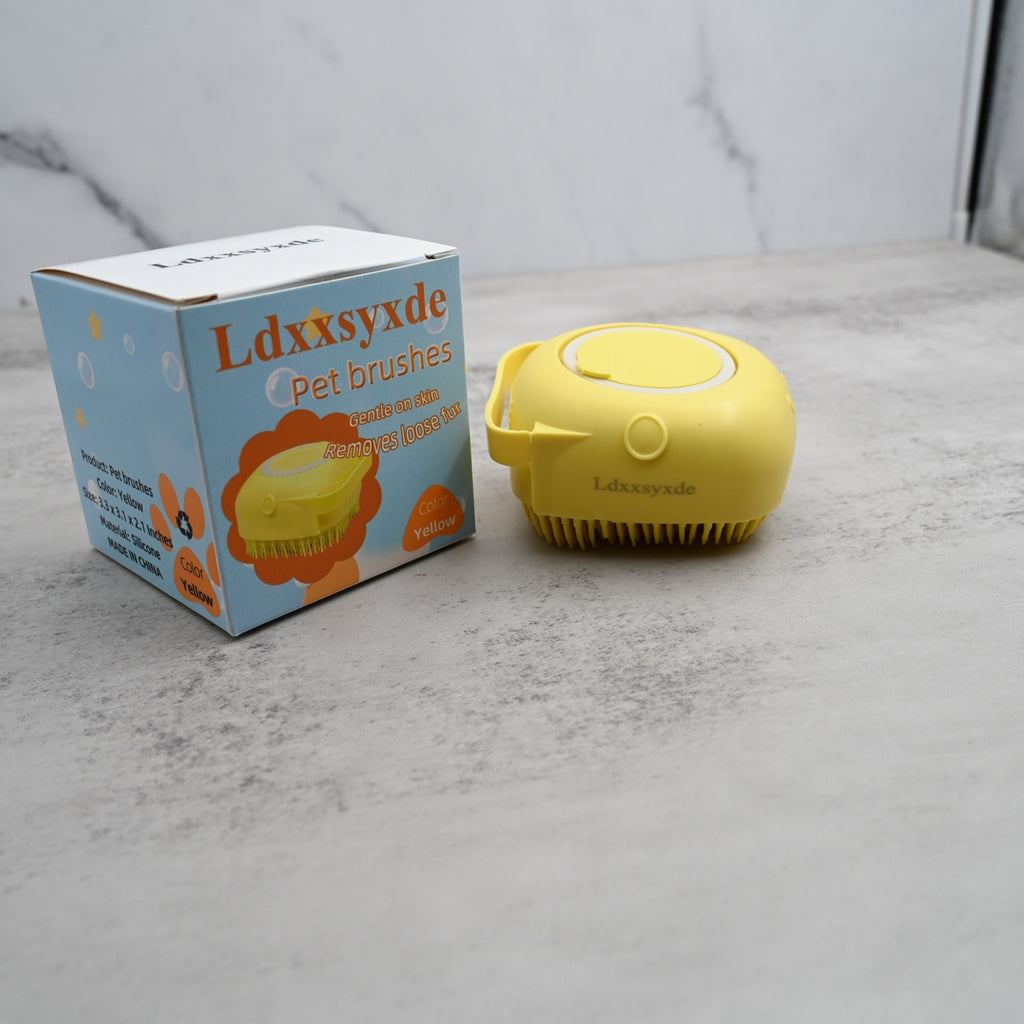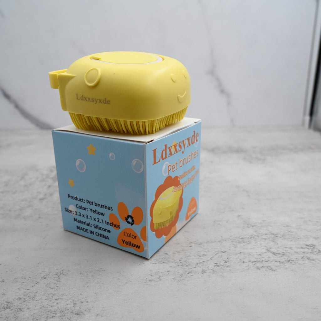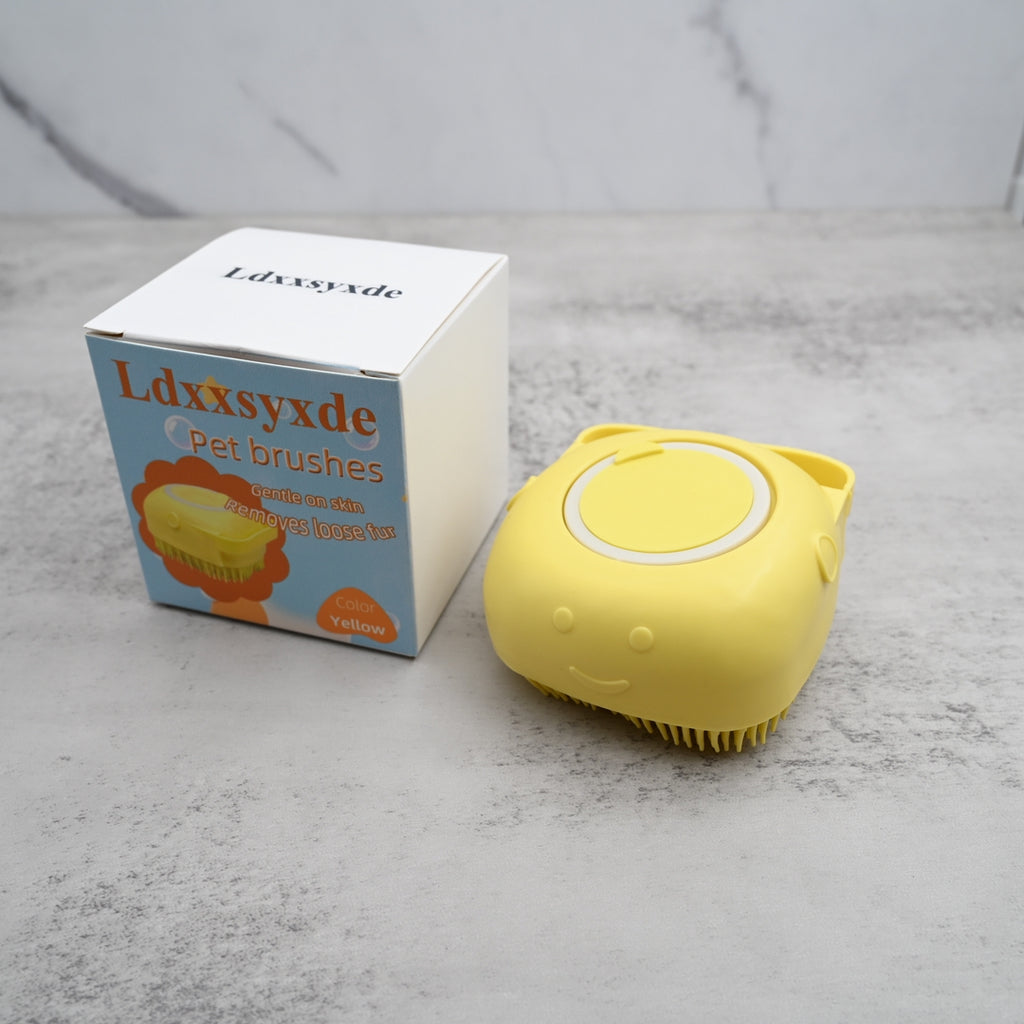 Transform your pet's bath time into a soothing spa experience with our professional-grade pet brushes. This ergonomically designed yellow bathing brush features soft silicone bristles that gently massage your pet's skin while effectively removing loose fur, dirt, and dander.