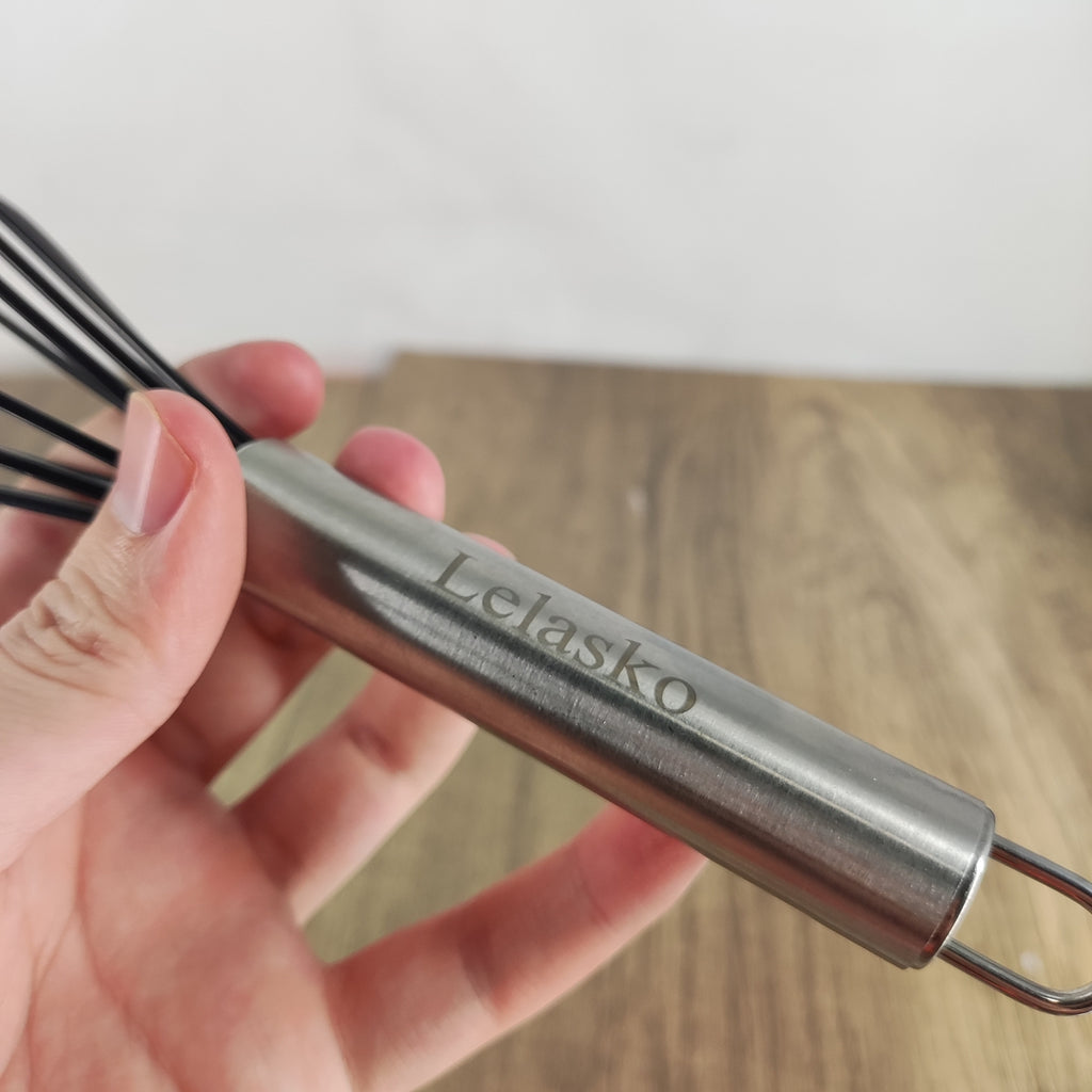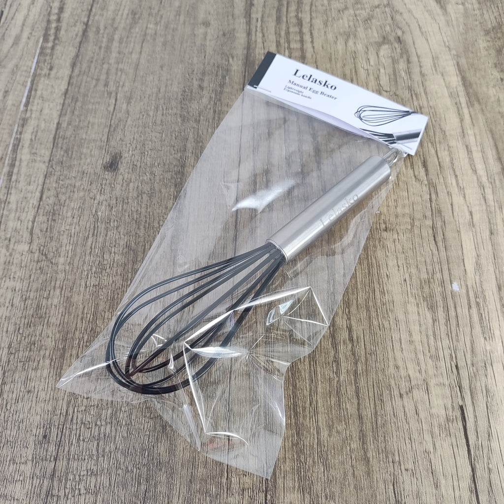 Lelasko 10-Inch Mini Manual Egg Beater, Black, 2.6x10 inches Stainless Steel